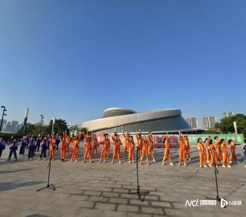 江門市體育中心體育館門前的氛圍點(diǎn)同樣高潮迭起,屢獲各級(jí)賽事大獎(jiǎng)的范羅岡濱江小學(xué)雅范合唱團(tuán)以純凈童聲唱響粵語版《氣勢(shì)如虹》《冬至燒雞》《星辰大?!?,清亮的歌聲成為賽道上最動(dòng)人的“能量補(bǔ)給”。