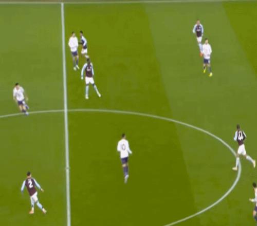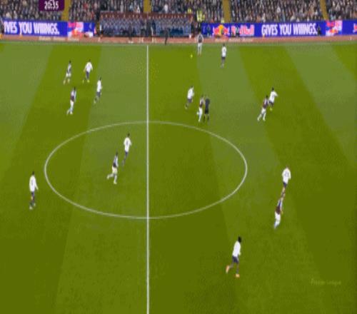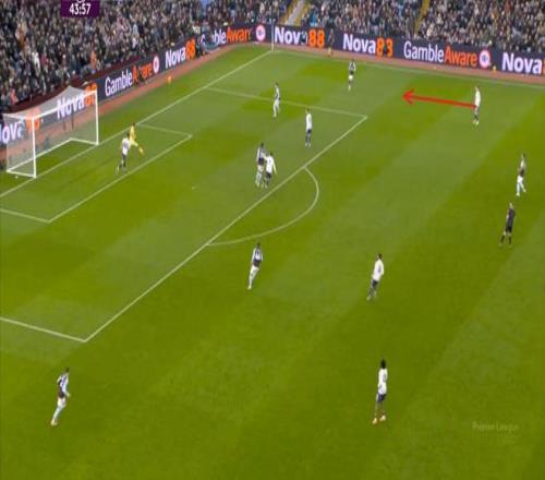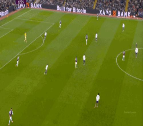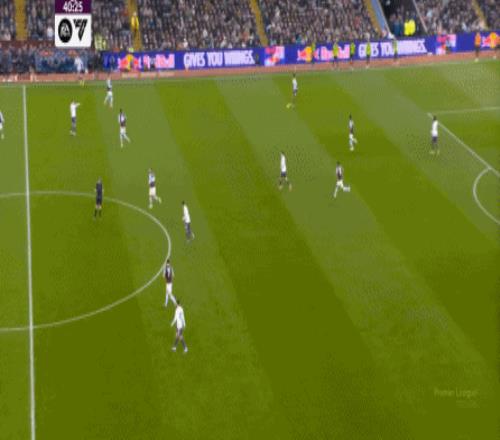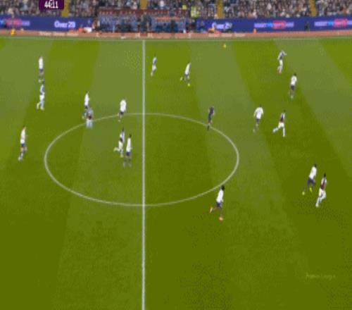 包括第二球也是一樣,前戲依舊是維拉吸引曼聯(lián)壓迫,然后用長球連接前場,還是拉出空當之后,由麥金帶出轉(zhuǎn)移到弱側(cè)的進攻:
