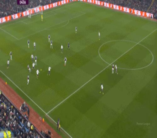 只不過這次的第一輪進攻沒有成功,但在第二輪進攻里,蒂勒曼斯在達洛特并不嚴密的防守下送出傳中,沃特金斯搶出前點,讓球落到了羅杰斯的腳下,然后讓第一球再重現(xiàn)一次: