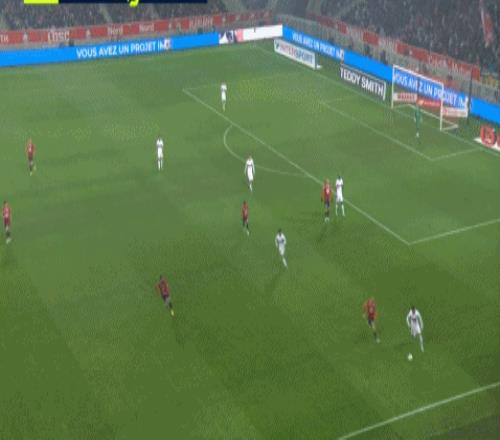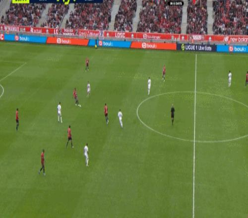 當時他在里爾主打四后衛(wèi)體系里的右中衛(wèi),和三后衛(wèi)的邊中衛(wèi)相比,位置稍微謹慎一點是正確的,但對手已經(jīng)打到面前的進攻,約羅還是明顯偏縮:
