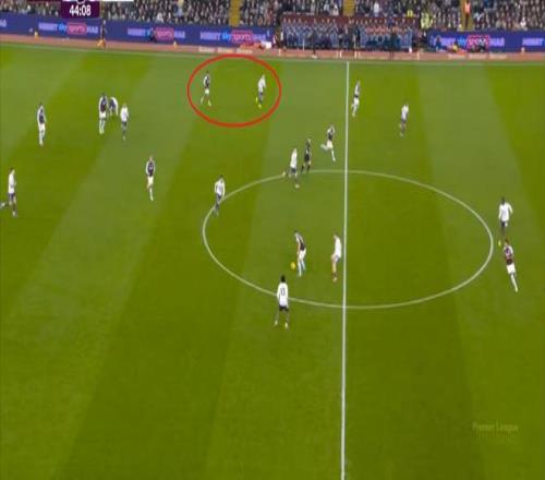 這里都是沒問題的,但到了前場,芒特在背身的情況下被奧納納頂?shù)?,球?quán)轉(zhuǎn)換,阿斯頓維拉開始向前:
