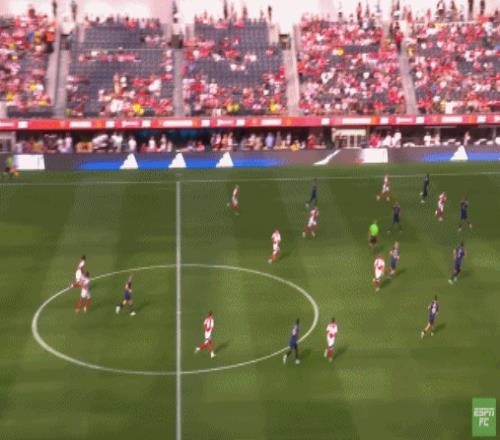 結(jié)果芒特沒有頂住奧納納,麥金可是靠自己的手臂動作頂住了盧克-肖,然后直接斜長傳找到了羅杰斯: