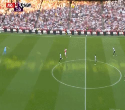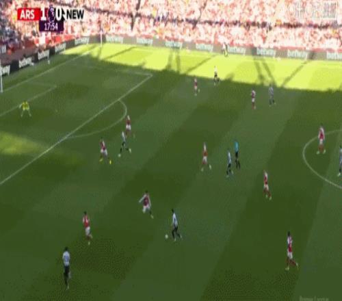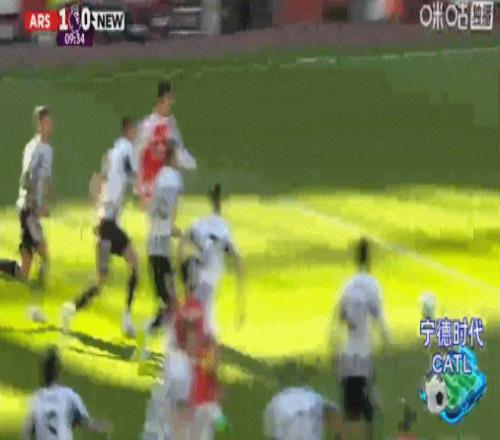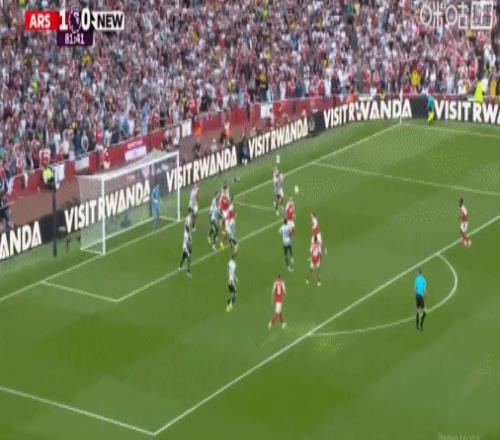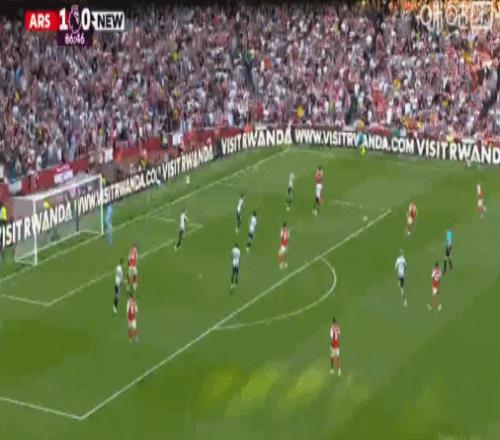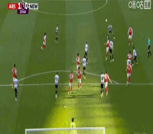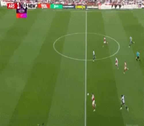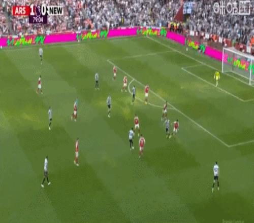 第9分鐘,阿森納角球配合,哈弗茨回做,埃澤世界波,阿森納1-0紐卡