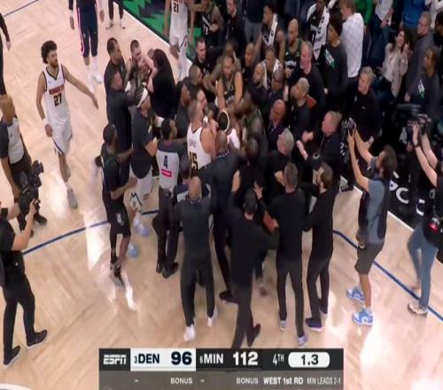 最后時(shí)刻勝負(fù)已定,麥克丹尼爾斯垃圾時(shí)間上籃,引起掘金球員不滿,雙方爆發(fā)沖突。約基奇和蘭德爾被驅(qū)逐。