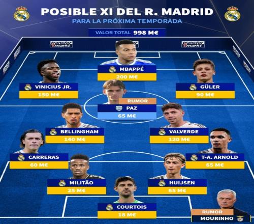 德轉(zhuǎn)預(yù)測(cè)皇馬下賽季首發(fā):