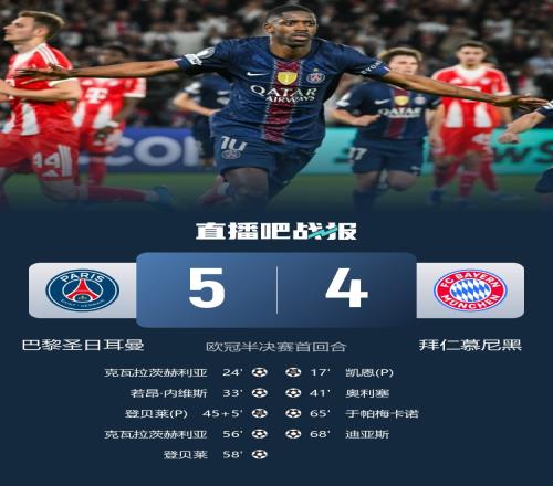 體育播報(bào)04月29日宣 歐冠半決賽首回合上演進(jìn)球大戰(zhàn),巴黎與拜仁鏖戰(zhàn)至5-4,打破歐冠半決賽單場(chǎng)進(jìn)球紀(jì)錄。曼城球星哈蘭德觀看了這場(chǎng)比賽的直播。