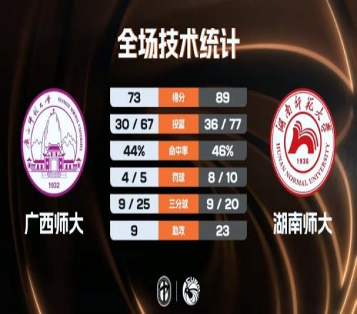 末節(jié)比賽,廣西師大繼續(xù)發(fā)起追分,他們利用一波7-2的攻勢(shì)終于追回到個(gè)位數(shù),分差最小時(shí)僅剩7分,好在是湖南師大及時(shí)穩(wěn)住陣腳,分差重新來(lái)到十分以上,最終湖南師大89-73輕取廣西師大成功晉級(jí)。