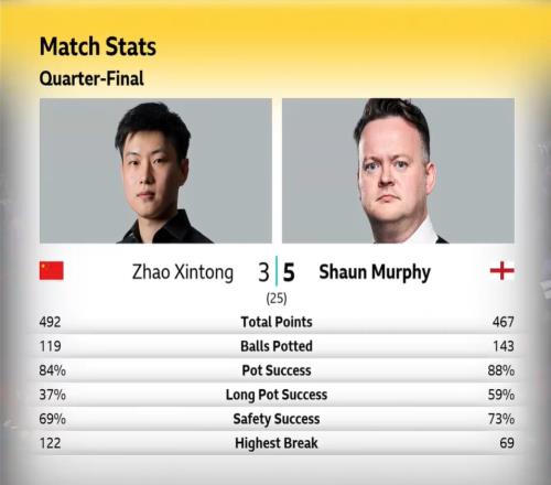 趙心童vs墨菲第一階段數(shù)據(jù):