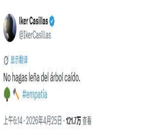 在這樣的背景下,卡西利亞斯顯然沒(méi)有錯(cuò)過(guò)表達(dá)態(tài)度的機(jī)會(huì)。在球隊(duì)對(duì)陣貝蒂斯受挫之后,他在社交平臺(tái)上發(fā)布了一句意味深長(zhǎng)的話:“不要從倒下的樹(shù)上砍柴(不要落井下石)?!蓖饨缙毡檎J(rèn)為,這是一條直指阿韋洛亞的“暗諷”。